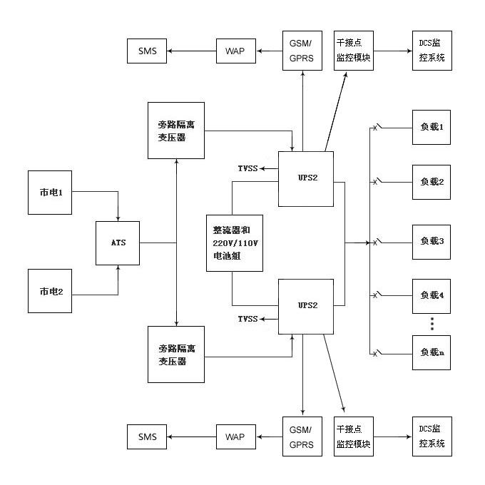 3)  充分利用電力行業的220V/110V大容量電池組,可最大限度的延長UPS的后備時間,并節省電池組的安裝空間和前期投資。